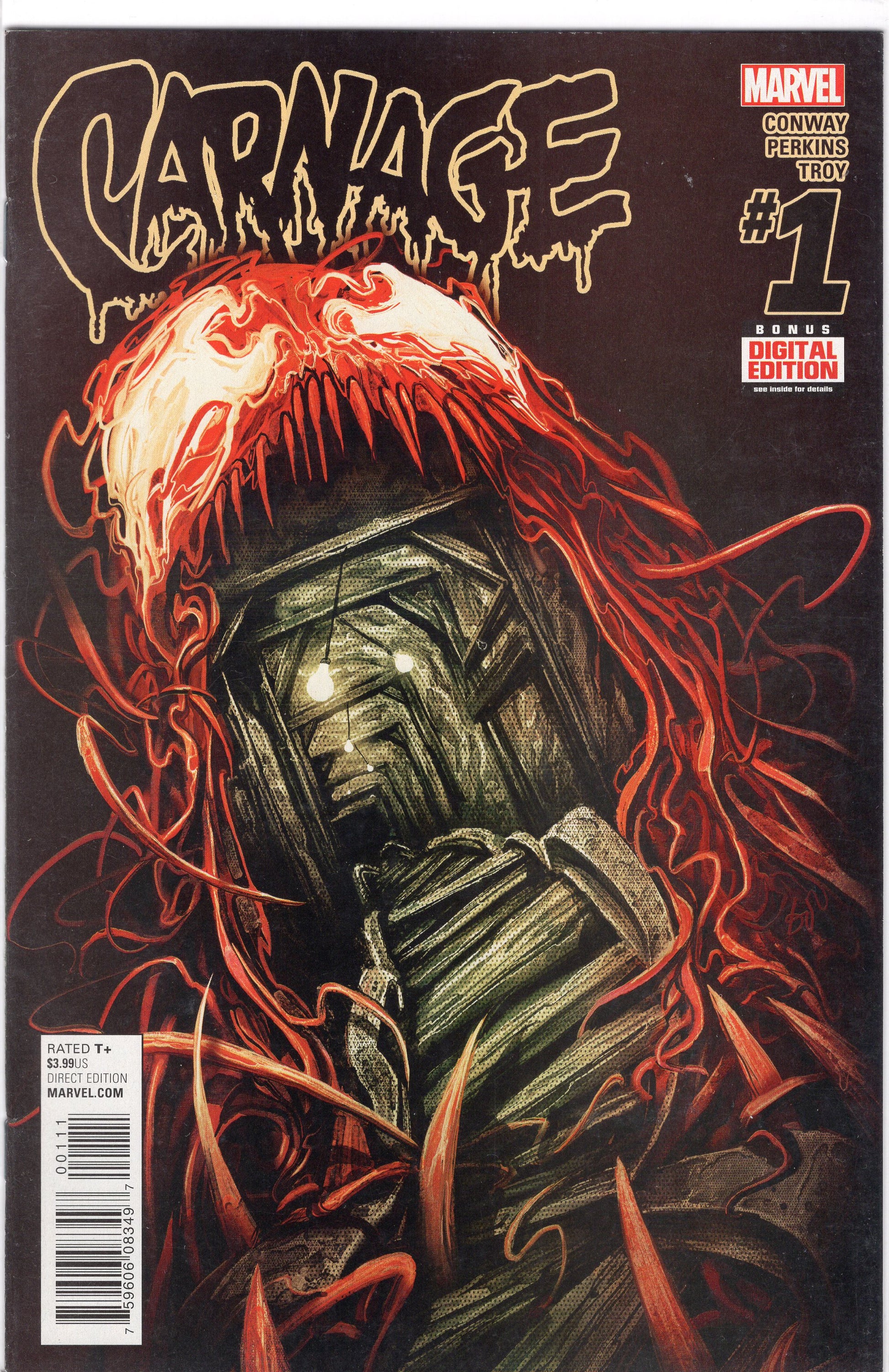 Get ready to scream! Carnage, the homicidal symbiote is back, and he's leaving a trail of bodies behind him. The FBI is hot on his trail, with a different playbook since their serial killer is a super villain. They're equipped with the latest sonic tech and a team including military hero/astronaut John Jameson and a reformed Eddie Brock/Toxin! But when Carnage escapes into an abandoned coal mine, the FBI's plan is starting to look like a trap... for THEM! Rated T+