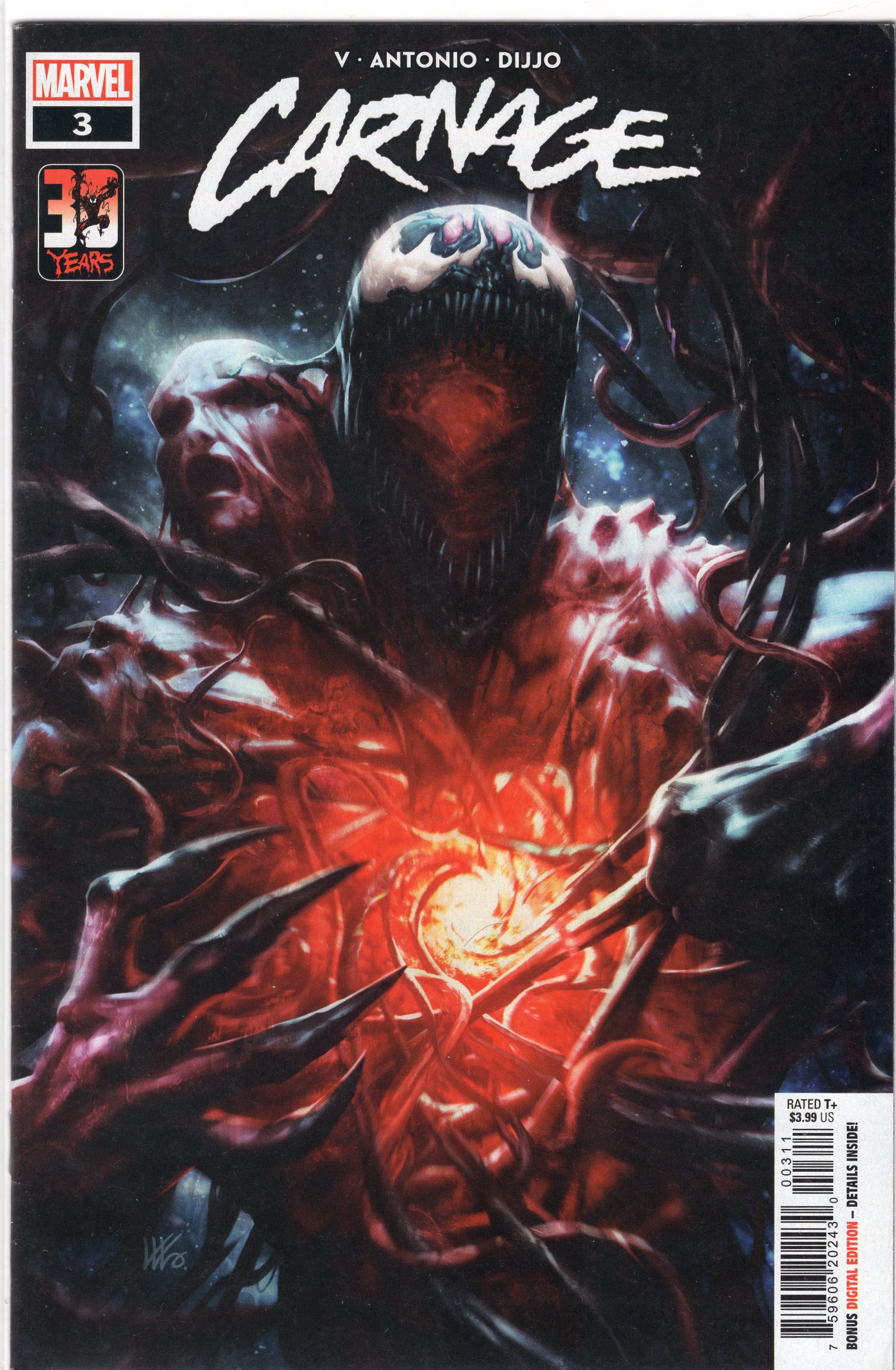 Years ago, Peter Parker spurned a puddle of black, extraterrestrial goo and inadvertently created one of the deadliest foes he's ever encountered: VENOM. Years later, Venom's offspring found a willing host in the form of Cletus Kasady, a dangerous serial killer, and together the two formed an even deadlier being called CARNAGE. But what will become of the Carnage symbiote now, rejected by the only loving host it's ever known? And, like Venom before it, what new and terrifying creature will emerge on the other side? RATED T+