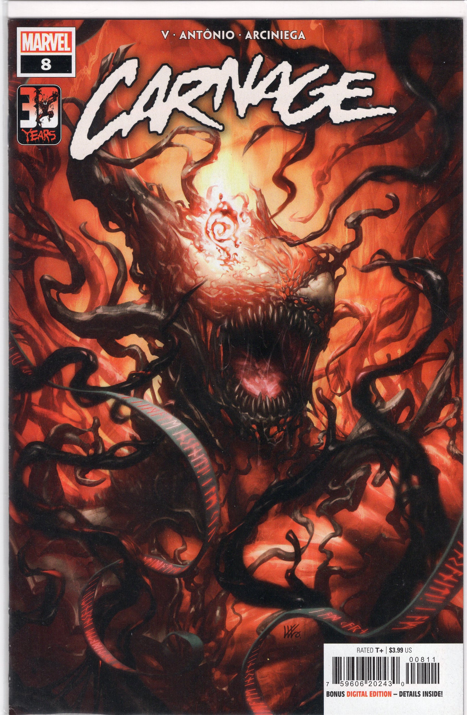 The Carnage symbiote traveled to Asgardian Hel with a very specific mission on its mind: reaching Malekith the Accursed! BUT TO WHAT END? What could the symbiote be trying to get out of the fallen lord of the Dark Elves? And what hell will be unleashed on the Marvel Universe in this issue once it succeeds?! RATED T+