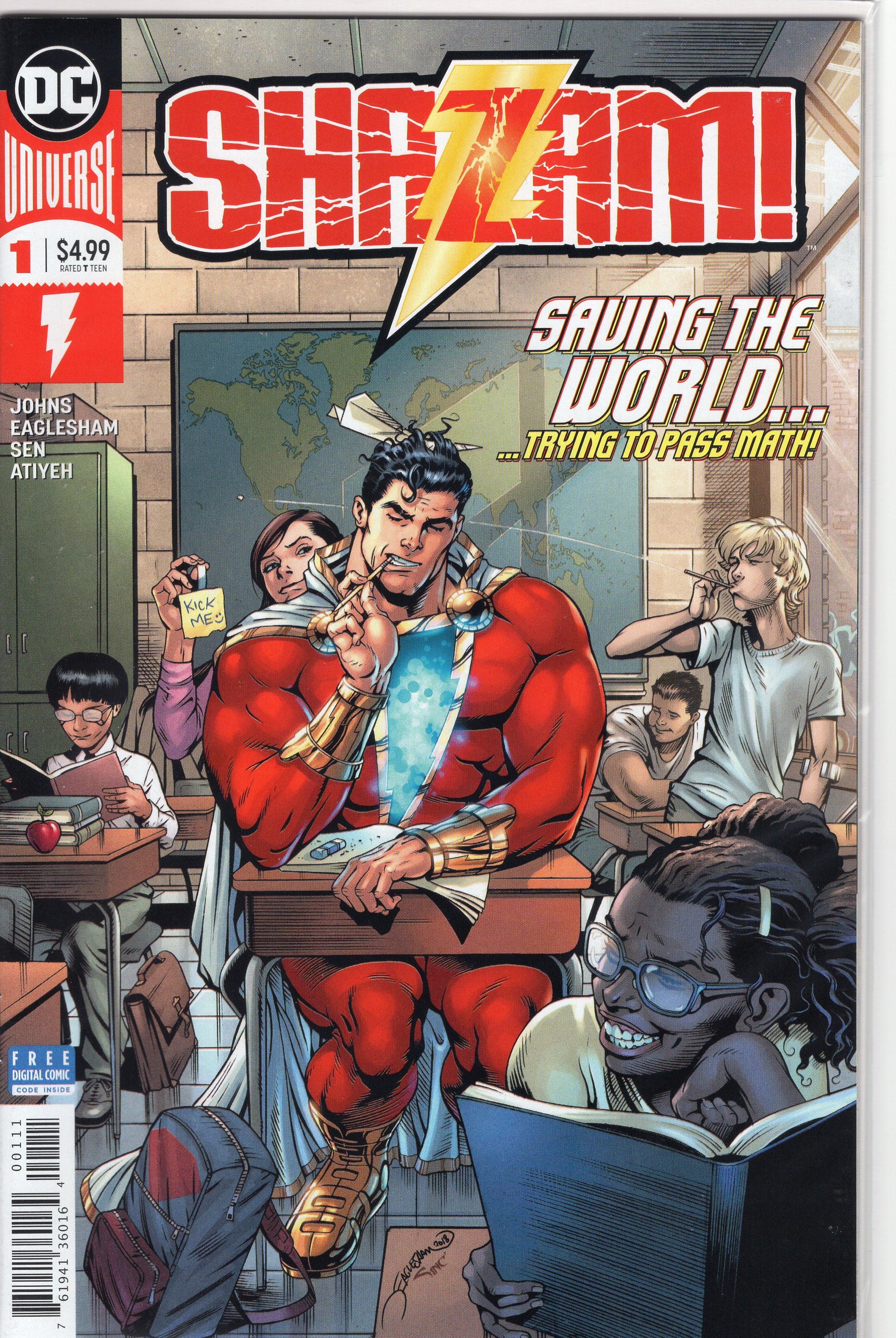 The superstar team of writer Geoff Johns and artist Dale Eaglesham reunite to launch the first all-new SHAZAM! monthly title set in the DC Universe in almost 20 years! (What took you guys so long?!) Teenager turned super-hero Billy Batson struggles to balance school and superheroics! (Guess which one is more fun?) But when Shazam unlocks a shocking secret deep within the Rock of Eternity, it challenges everything he knows about the worlds of magic and his family's future as its champions! Also, witness the bizarre team-up of Dr. Sivana and Mr. Mind as they set off to build a society all their own! Don't miss the start of an epic run in the making as "Shazam and the Seven Realms" begins!